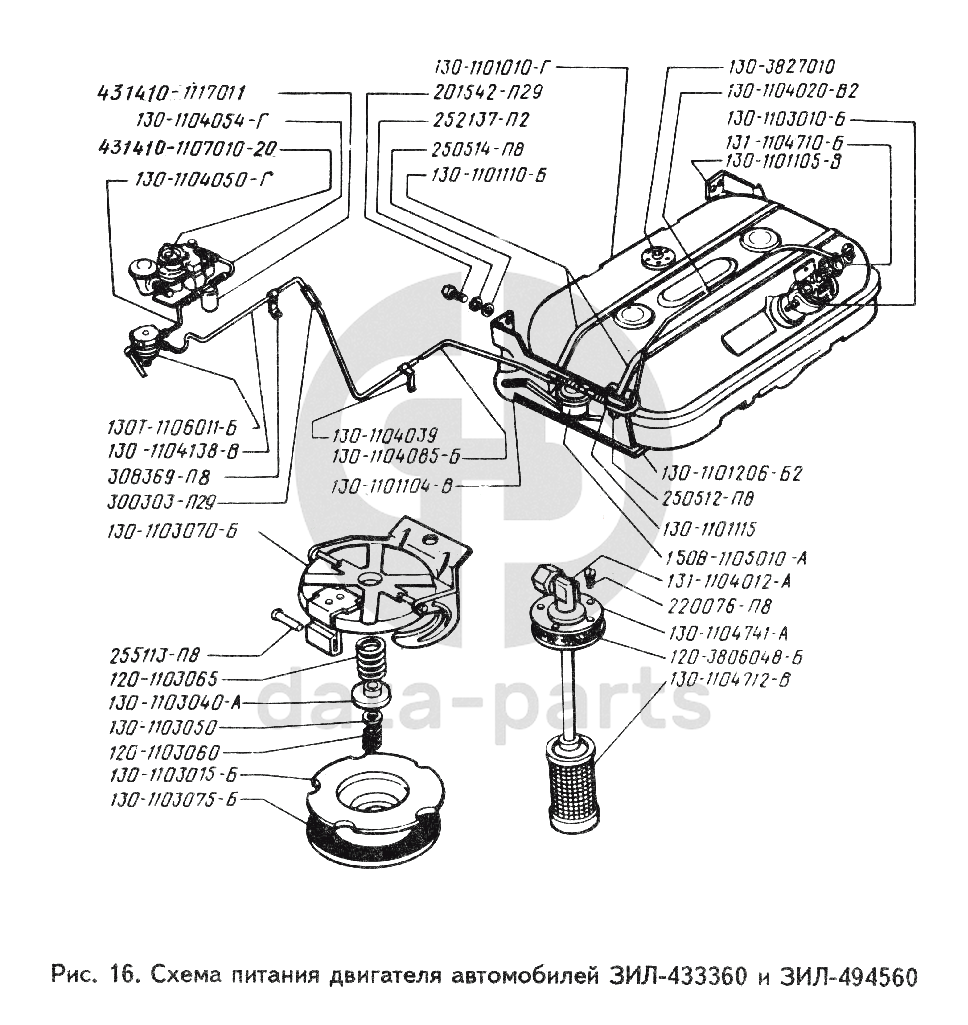 Схема питания двигателя автомобилей ЗИЛ-433360 и ЗИЛ-494560 ЗИЛ 494560